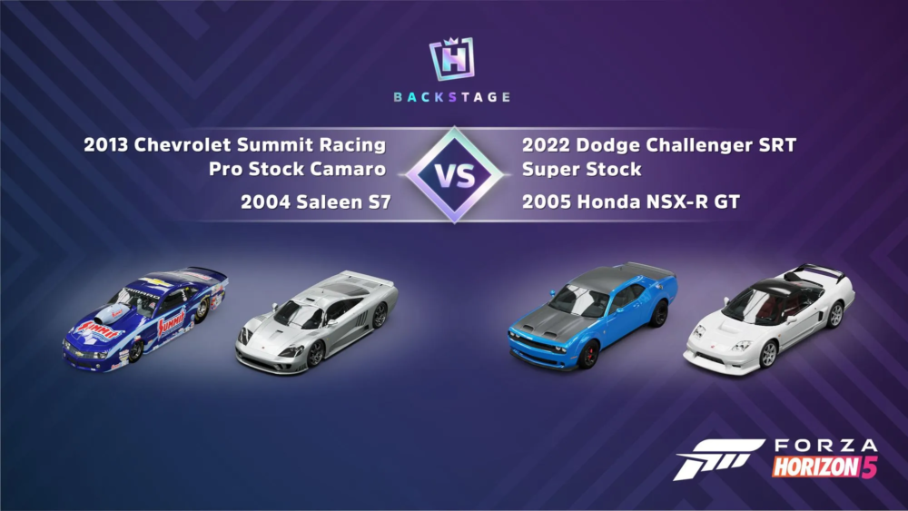 今後4週間にわたって開催されるお祭り対決のラインナップが決定!お気に入りの車ペアを事前に投票して、ホライゾン・バックステージでの購入可能化を目指そう。