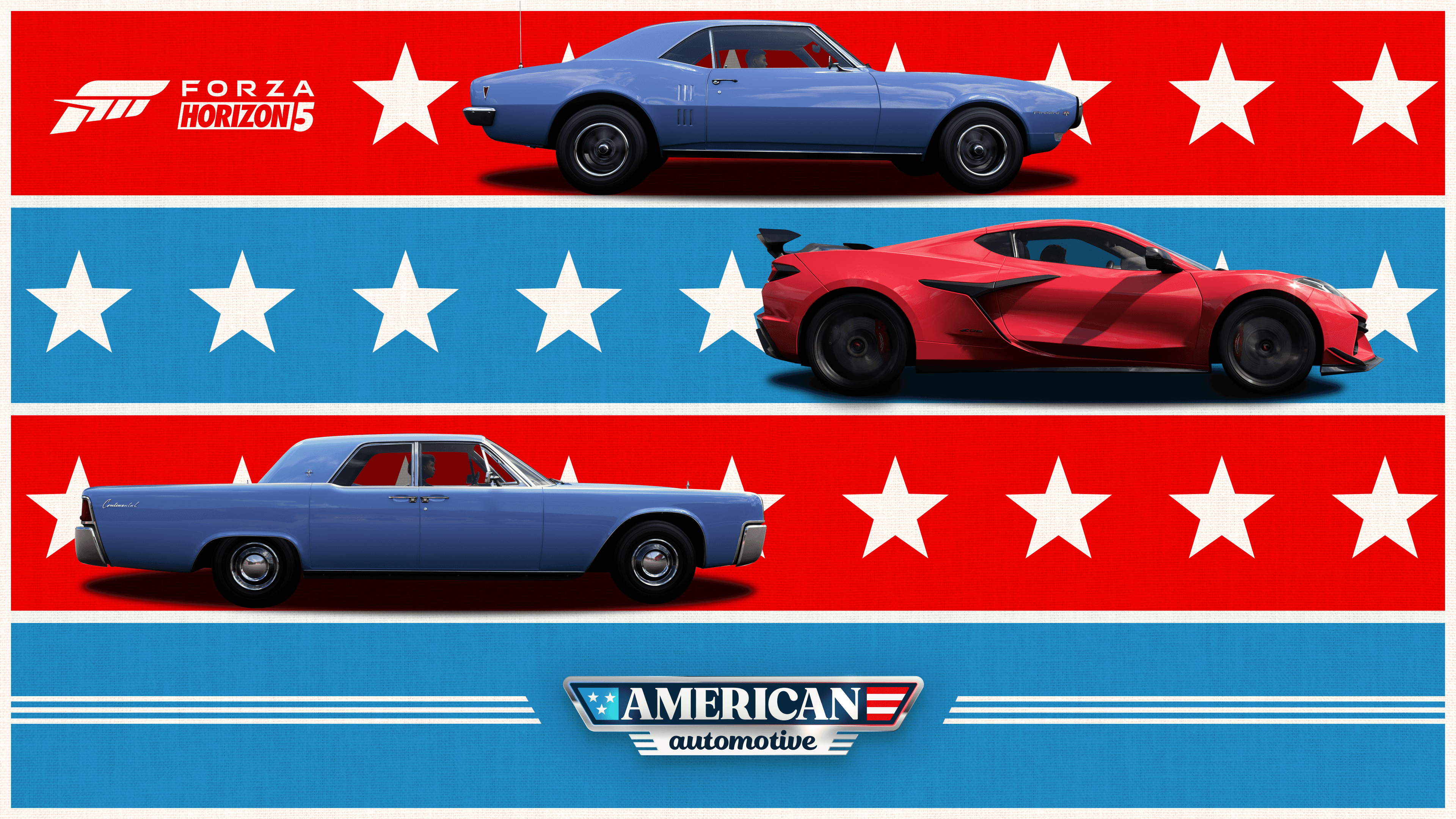 赤、白、青がアクセルを踏み込み、アメリカの自動車がForza Horizon 5に登場。