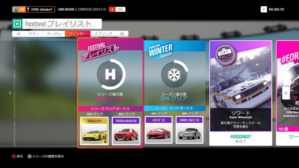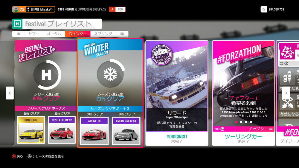 Forza Forza Horizon雑記 ハイパフォーマンスデイリー オータム 2025/11/14 #ForzaHorizon5 #Forzathon 記念写真終了。Weekly終了。2014 HSV GEN-F GTSのチューンを公開しています。共有コードは 907 366 170 です。EventLab終了。PRスタント終了。本土のレース終了。コレクタブルズ終了。今週もここまでですかね... 2025-11-14 ForzaXboxゲーム