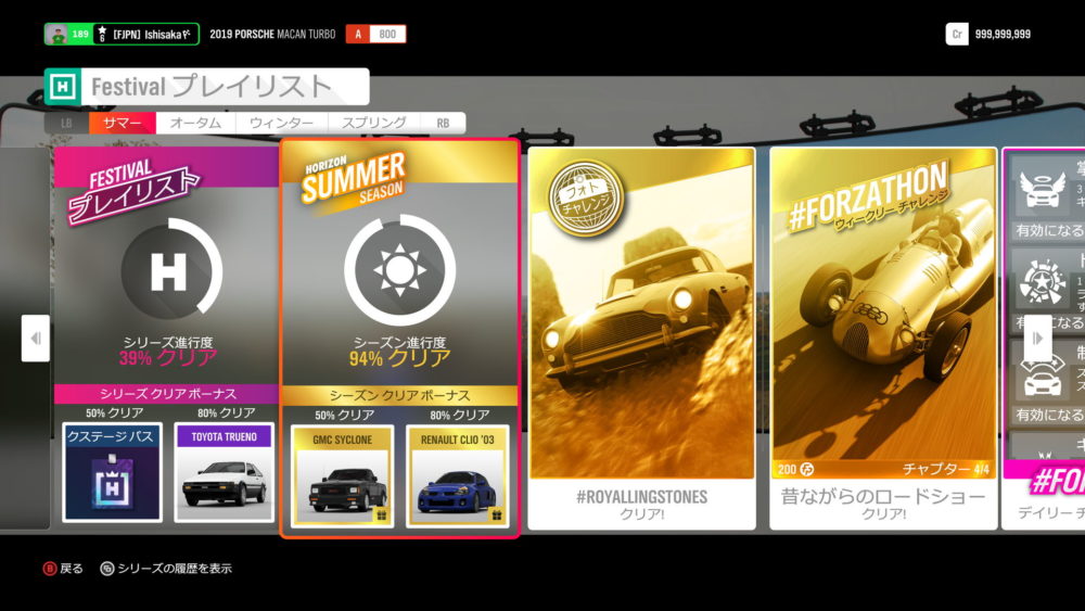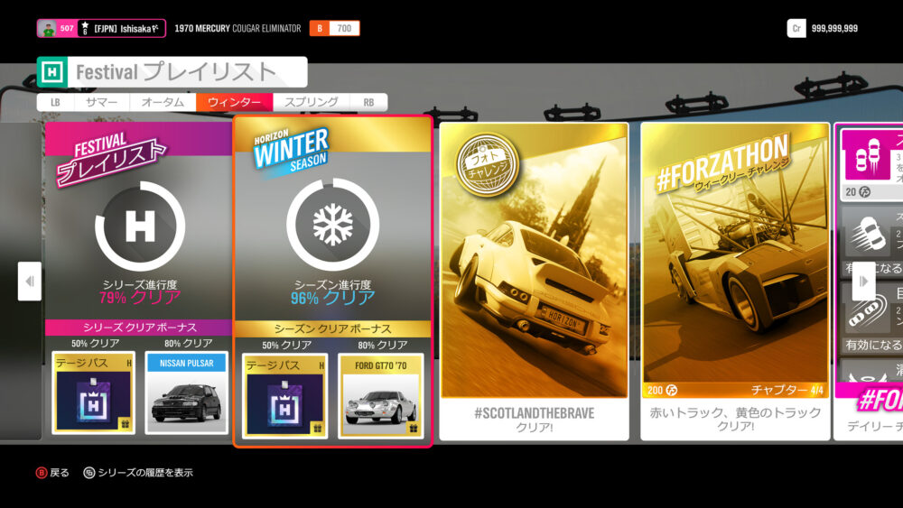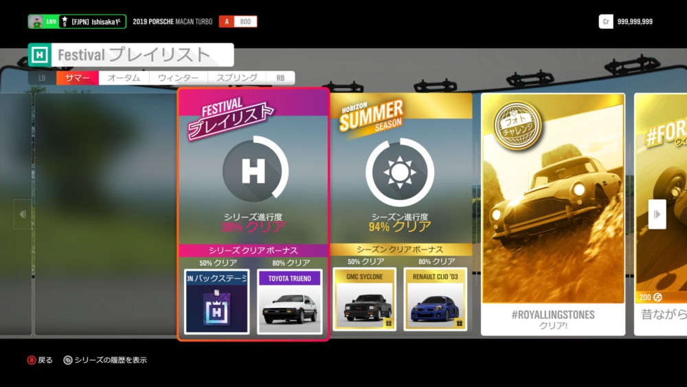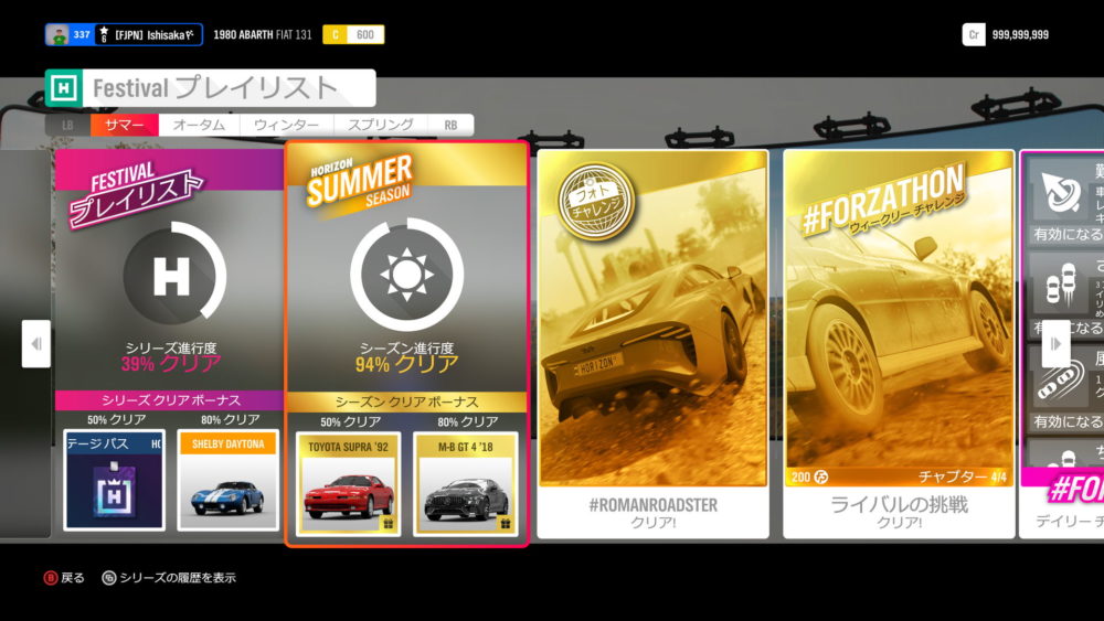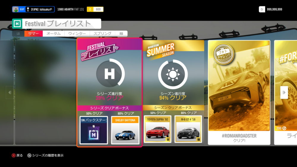 Forza Forza Horizon雑記 Horizonホリデー サマー 2025/12/05 #ForzaHorizon5 #Forzathon 記念写真終了。宝探し終了。AMで5マイル走行すればクリア。ウィークリー終了。2つめのスピードトラップのチャレンジはストックでクリアする必要があります。スタジアム近くのスピードトラップに坂を下って行くのが良いでしょう。それ以降はアップグレード... 2025-12-04 ForzaXboxゲーム