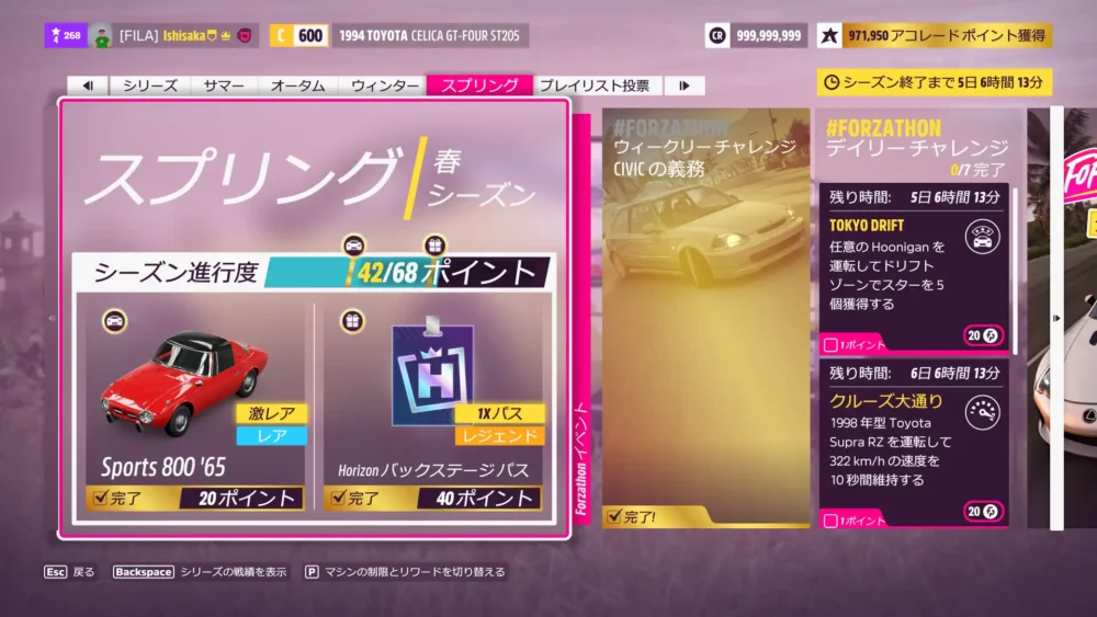 ウィークリー終了。1997 Honda Civic Type Rのチューンを公開しています。共有コードは、929 244 919 です。
