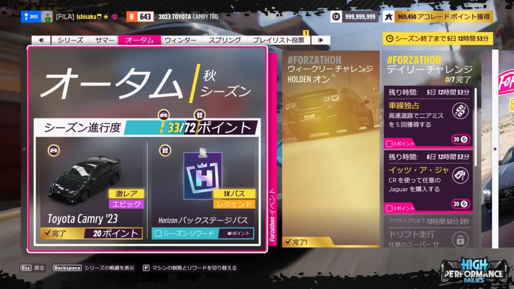 Forza Horizon雑記 ハイパフォーマンスデイリー オータム 2025/11/14 #ForzaHorizon5 #Forzathon