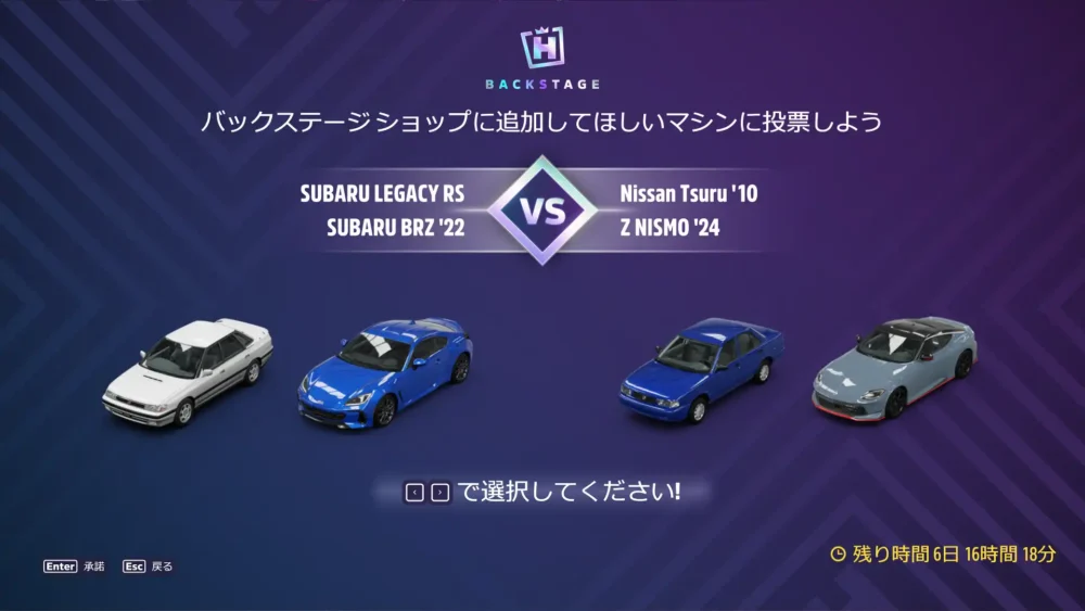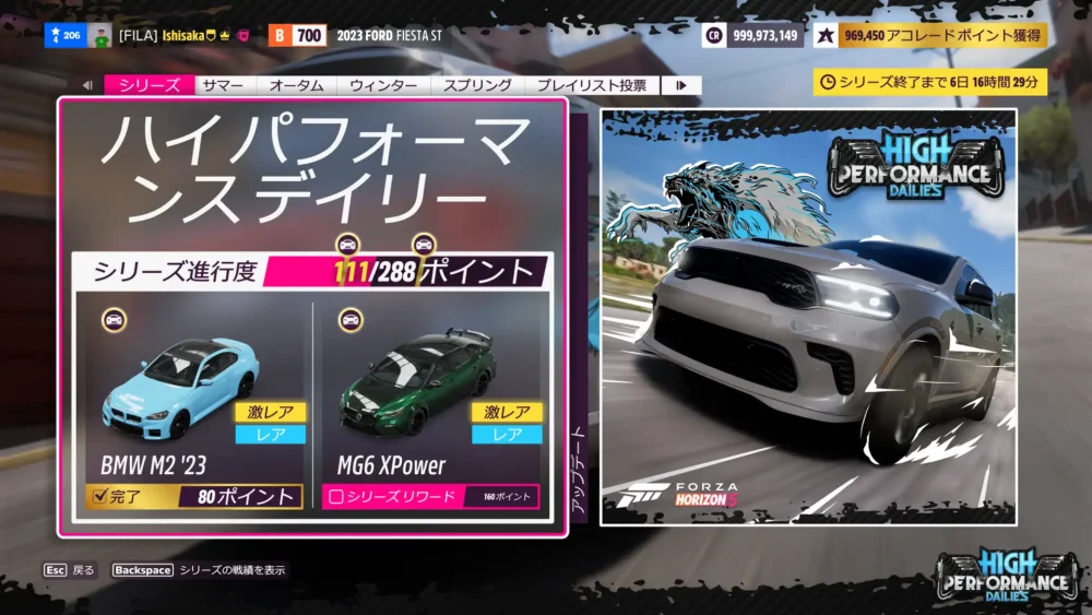 宝探し。Ford Focusでテストコースのイベントに入り、何かしらのアップグレードを適応して抜けるです。