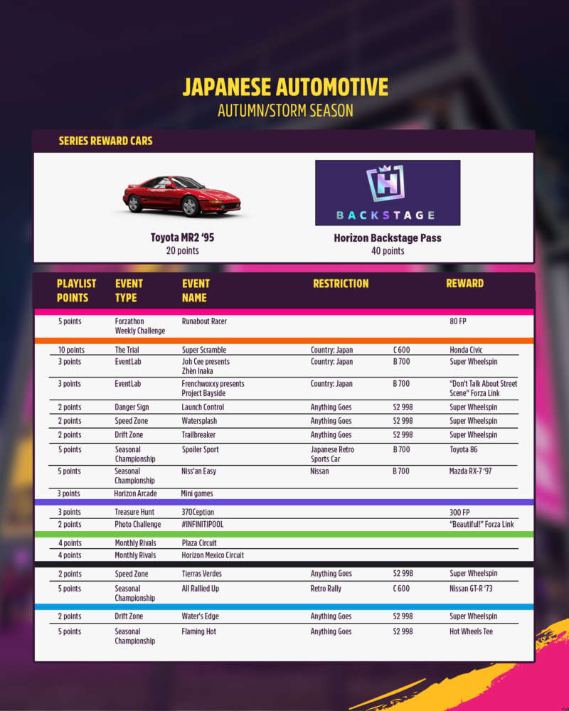 AUTUMN | STORM SEASON | JAPANESE AUTOMOTIVE (SERIES 57) Here are the details on this week’s events and rewards. Share ti...