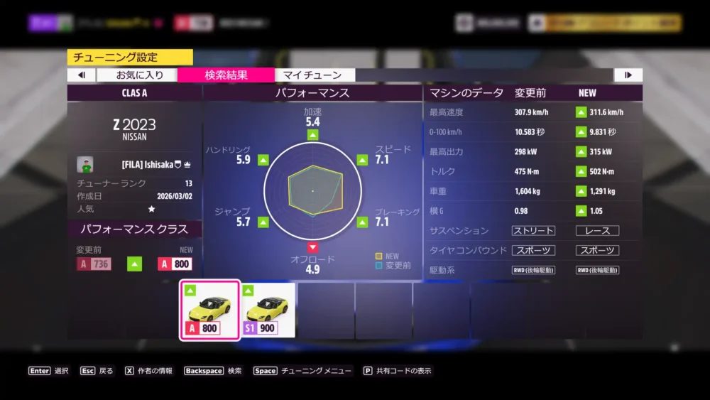 2023 Nissan ZのAクラスチューンを公開しています。共有コードは、817 237 072 です。