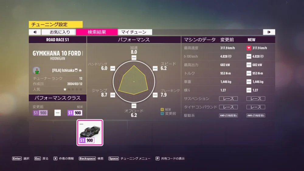 ウィークリー終了。1977 Hoonigan GYMKHANA 10 Ford F-150 “Hoonitruck”のS1クラスレース用チューンを公開しています。共有コードは、154 463 485 です。