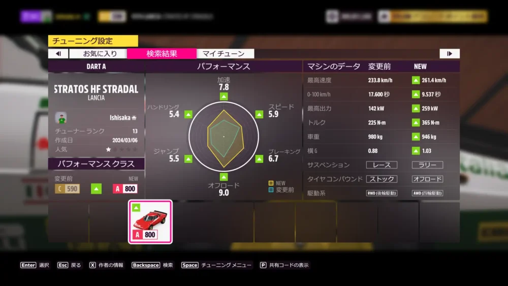 スポンサーリンク Forza Horizon雑記 欧州車 オータム 2026/05/01 #ForzaHorizon5 #Forzathon Forza 2026-05-01 トライアル終了。 記念写真終了。 ウィークリー終了。1974 Lancia Stratos HF Stradaleのチューンを公開しています。共有コードは、104 118 789 です。 2021 Mercedes-AMG SL 63ゲット。
