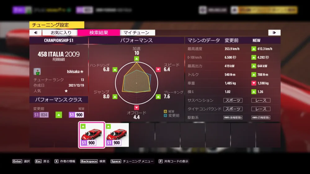 ウィークリー終了。2009 Ferrari 458 Italiaのチューンを公開しています。共有コードは、355 557 089 です。