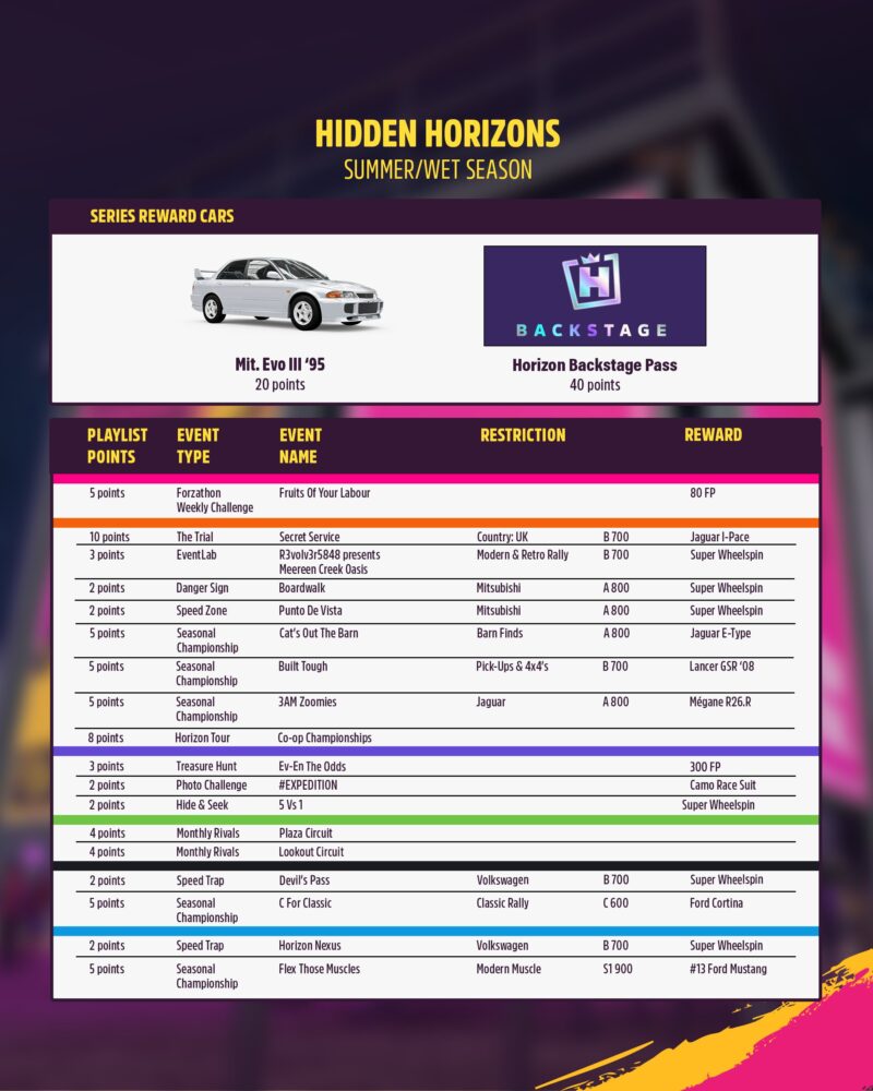 SUMMER | WET SEASON | HIDDEN HORIZONS (SERIES 55) Here are the details on this week’s events and rewards. Share tips alo...