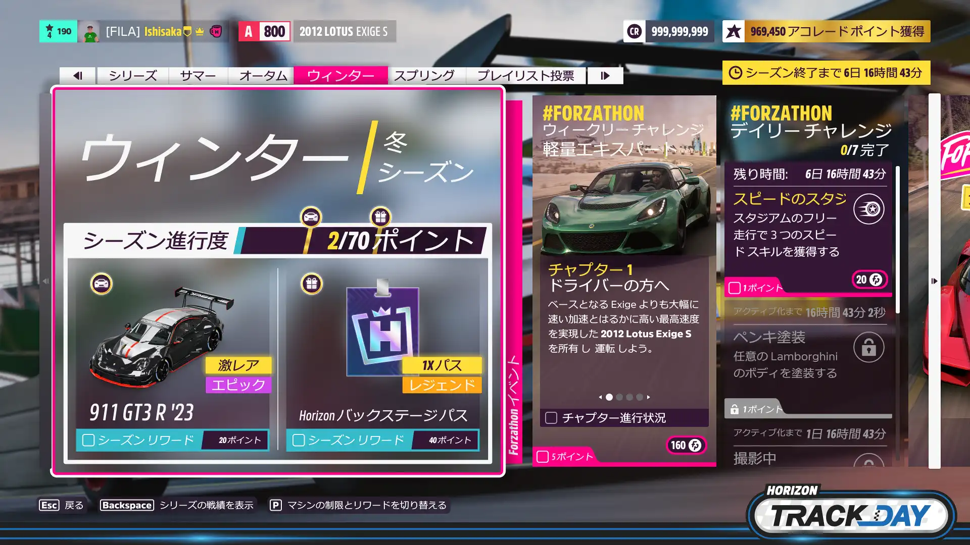 ウィークリー終了。2012 Lotus Exige Sのチューンを公開しています。共有コードは 181 787 285 です。