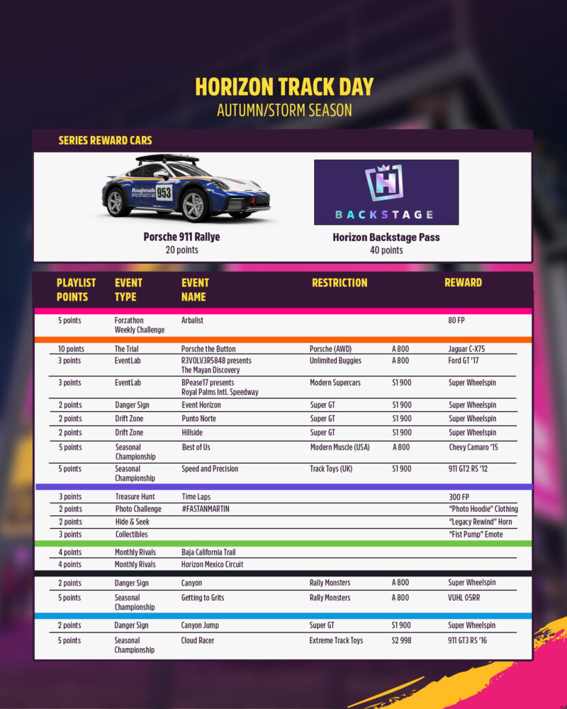 AUTUMN | STORM SEASON Here are the details on this week’s events and rewards. Share tips along with your tuning setup co...