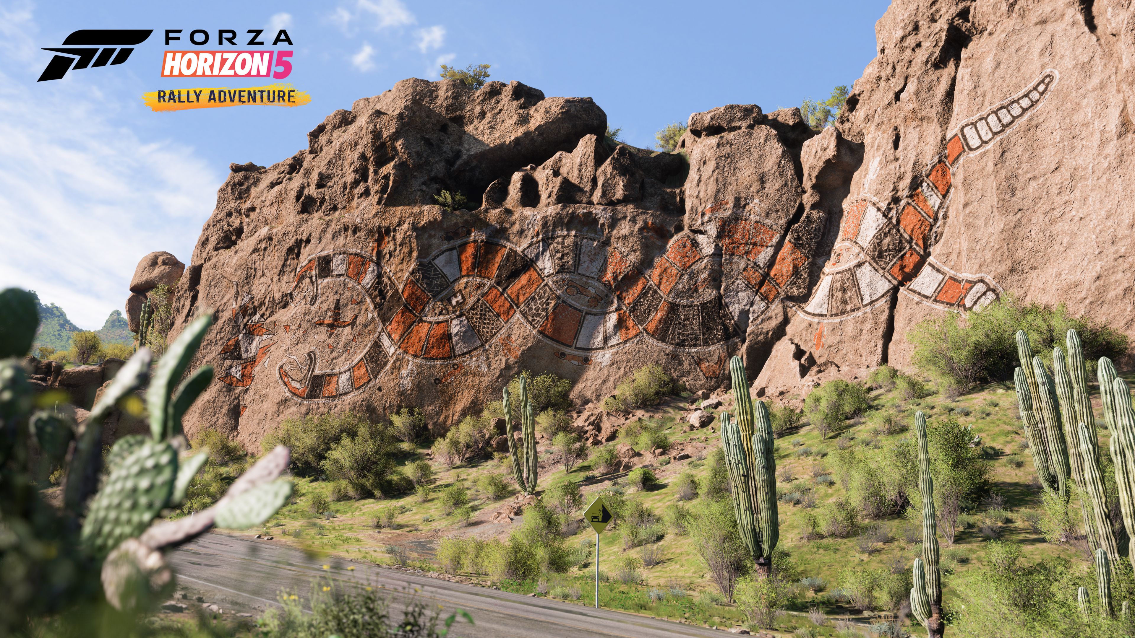 アスファルトラリードライバーの皆さん、砂漠の渓谷のテクニカルロードに挑む準備はできていますか?この渓谷は、アンチラグターボチャージャーから響くポップ音とバーン音を聞くのに最適な場所です。この渓谷では、信じられないようなスケールの景色、渦巻く道、ユニークな筋模様の巨大な岩、そしてHorizonをモチーフにした壁画によってユニークな個性が刻まれた地形に出会うことができます。木製の橋の上では、フォトモードに切り替えて、ディテールを間近で撮影することができます。