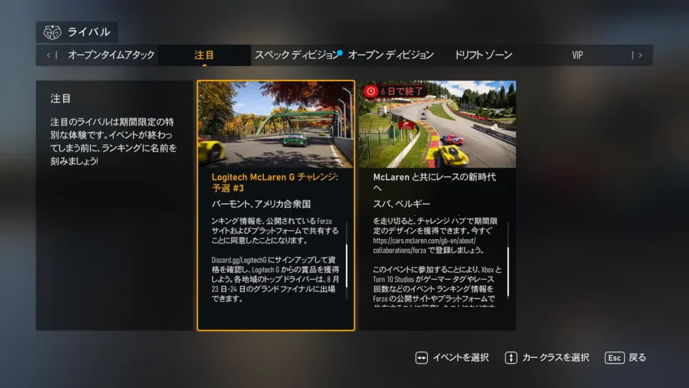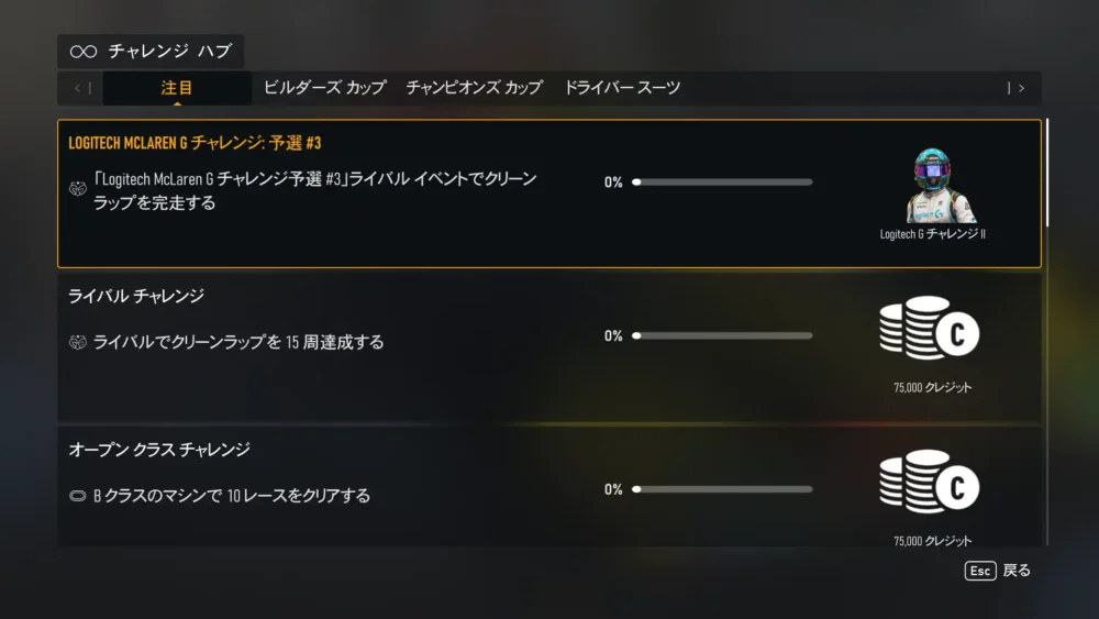 スポンサーリンク Forza Motorsport雑記 2025/07/10 #ForzaMotorsport Forza 2025-07-10 New Week Forzaの週替わりは木曜日。 マルチ、ライバルの更新は以上です。以下も参考にしてください。 Forza Motorsport アップデート 21.0 (2025-06-16) #ForzaMotorsportForza Motorsport Update 21 Release Notes – June 16, 2025 – Forza Support以下上の雑訳Forza Motorsport Update 21 では、最新世代の IndyCa... チャレンジハブ プレイログ まぁ少しずつ追加されたソロコンテンツを進めています。