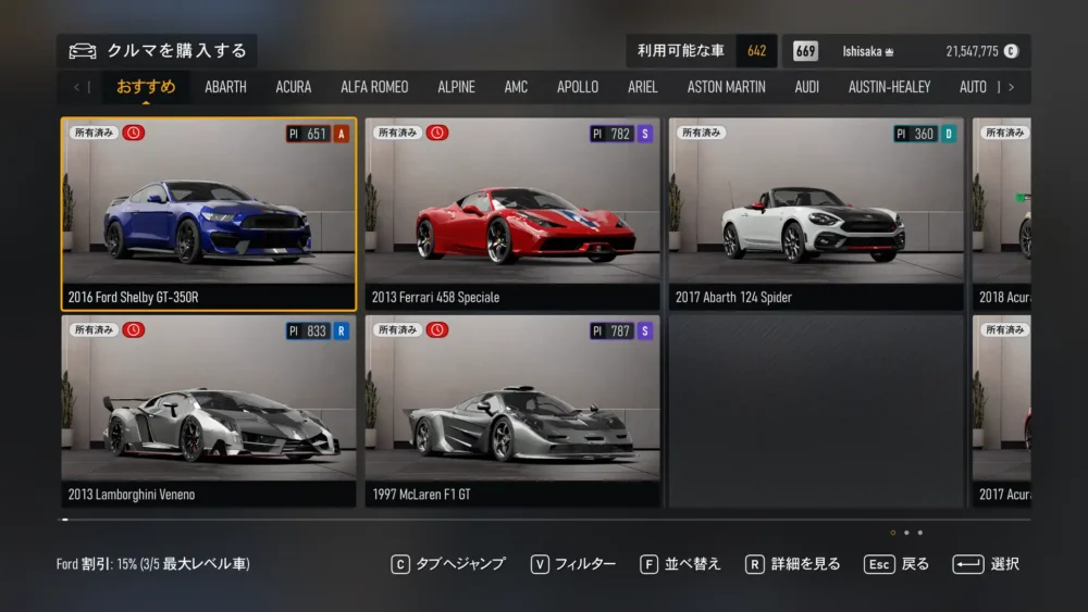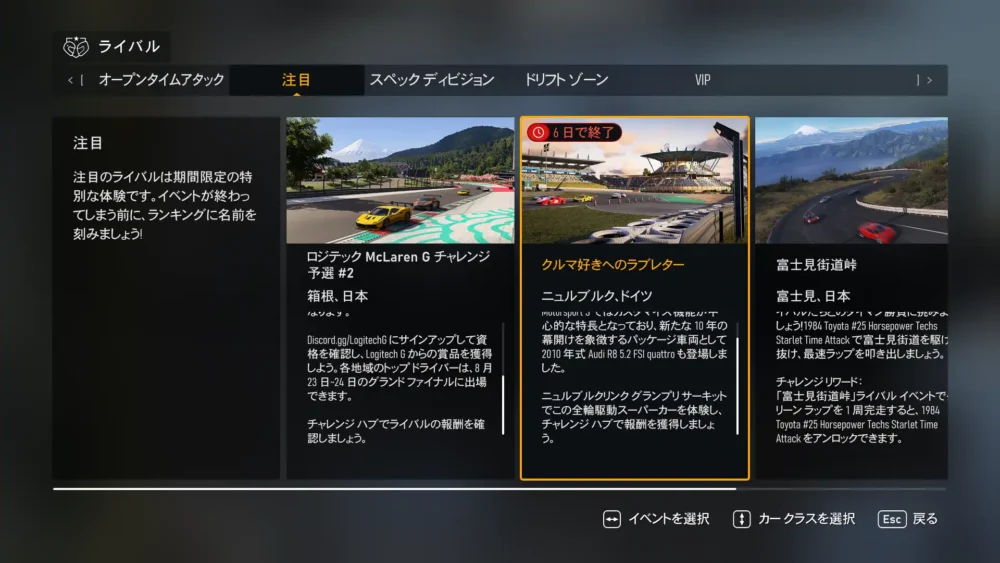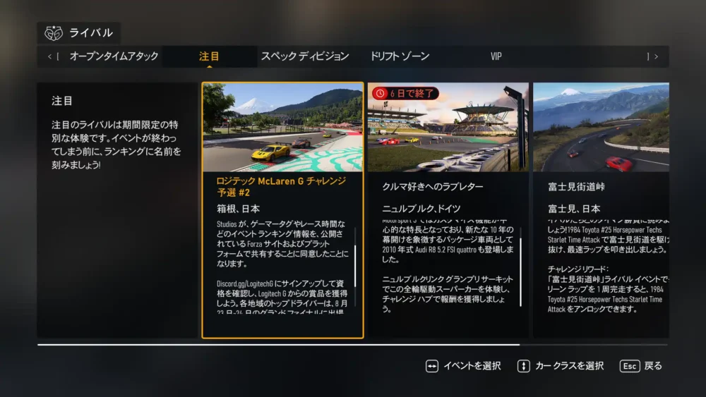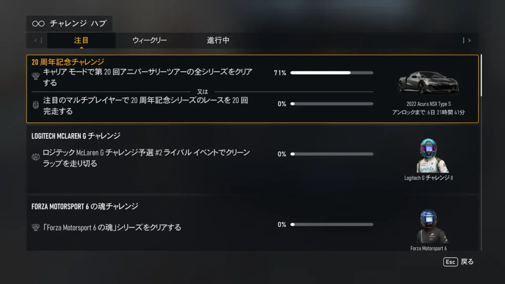 Forzaの週替わりは木曜日。