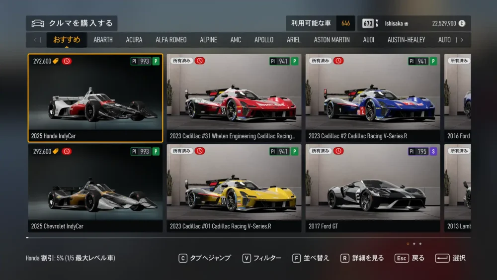 アップデート21が公開されました。内容的には現行IndyCarの追加、ソロプレイコンテンツの強化といった感じでしょうか。