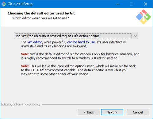 Use Visual Studio Code As Git’s default editorはVisual Studio Codeを標準とするオプションです。このオプションを有効にした場合にはVisual Studio Codeのインストールが必要です。