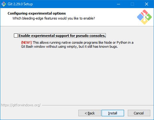 Enable experimental support for presdo consolesはpseudo consoleを使用する場合にはチェックを入れます。それがよくわからなかったり、必要が無い場合にはチェックは不要です。