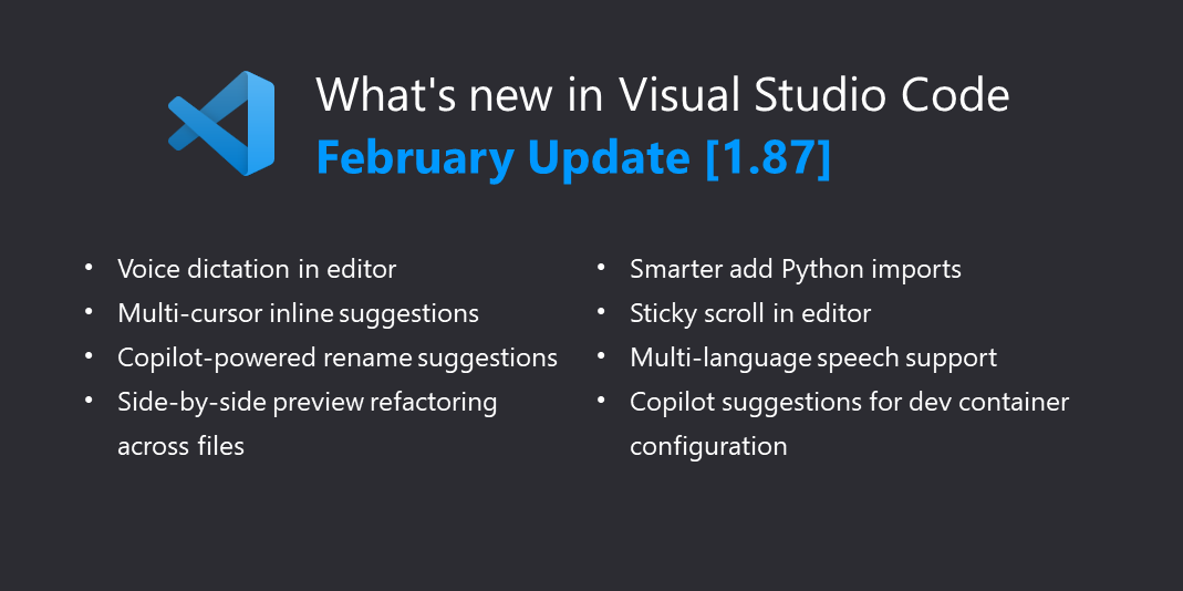 Learn what is new in the Visual Studio Code February 2024 Release (1.87)